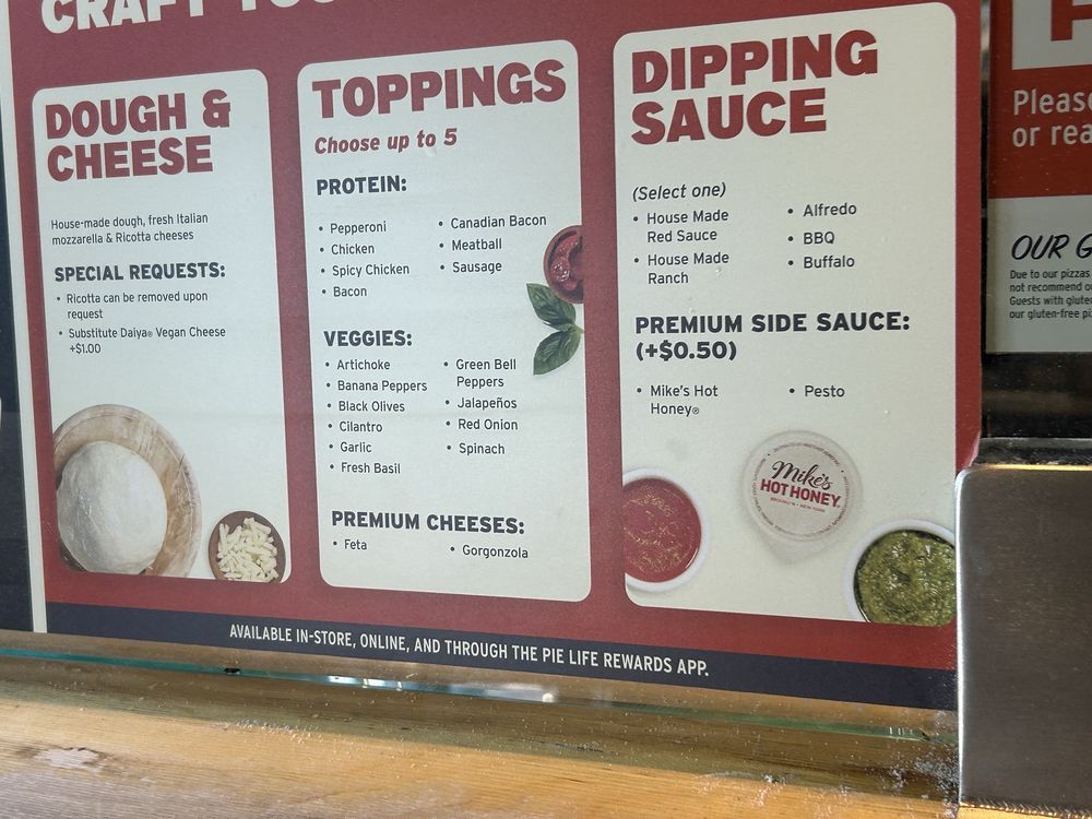 Craft Your Own 11" PieRise® with your choice of sauce, toppings, and after bake on our house-made, hand stretched dough.